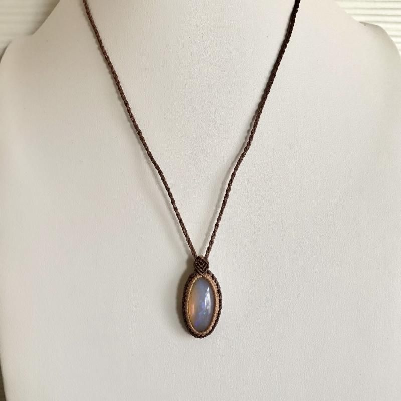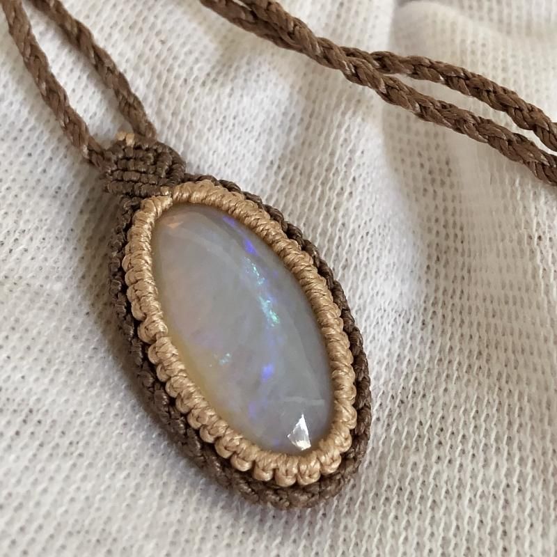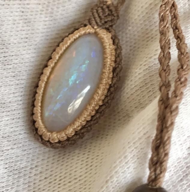 透明感の中に見られる遊色効果!メキシコ産ウォーターオパール・マクラメ編みネックレスG.Arai氏作品